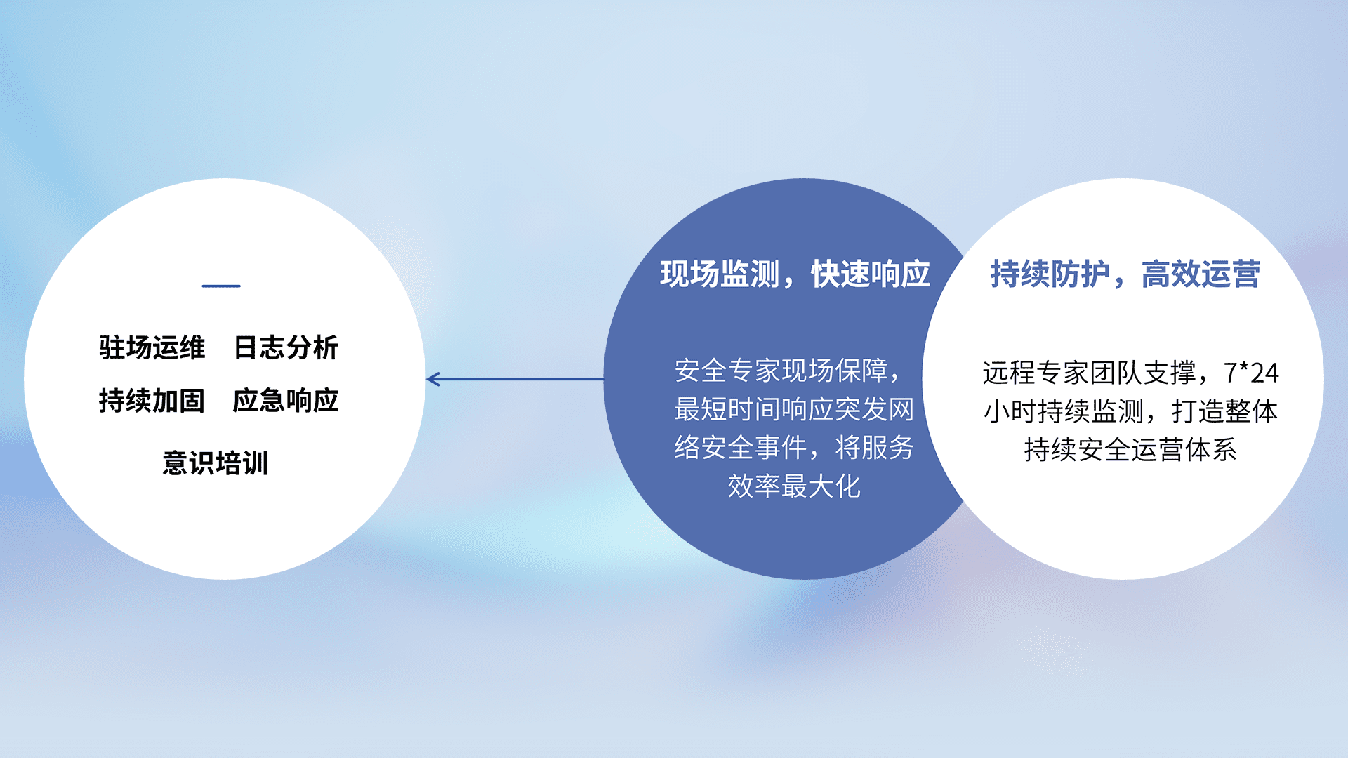 7X24小时持续监测安全事件,保持安全策略有效性,降低资产脆弱性风险,,,精准拦截黑客攻击,,,减少被黑客利用的机会,,,第一时间遏制,,,,降低损失。。。